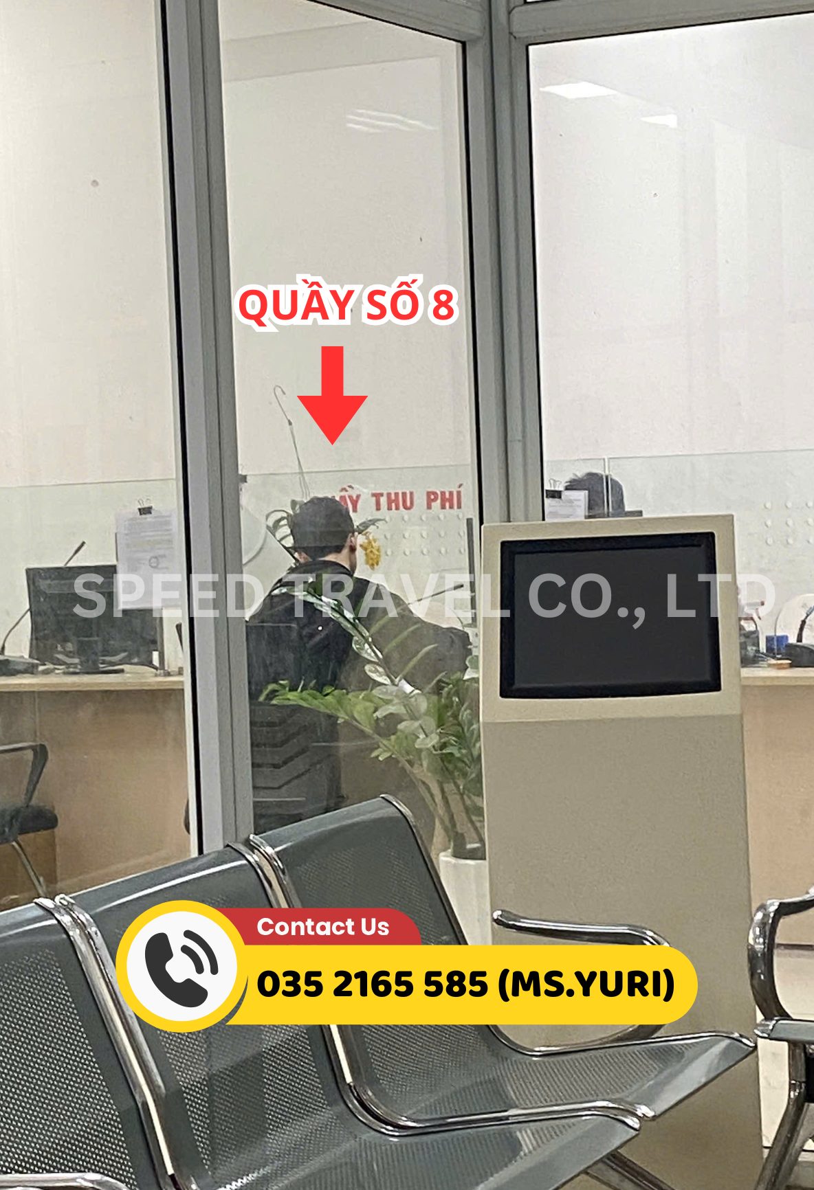Khi được gọi tên, đến quầy số 8 để:
